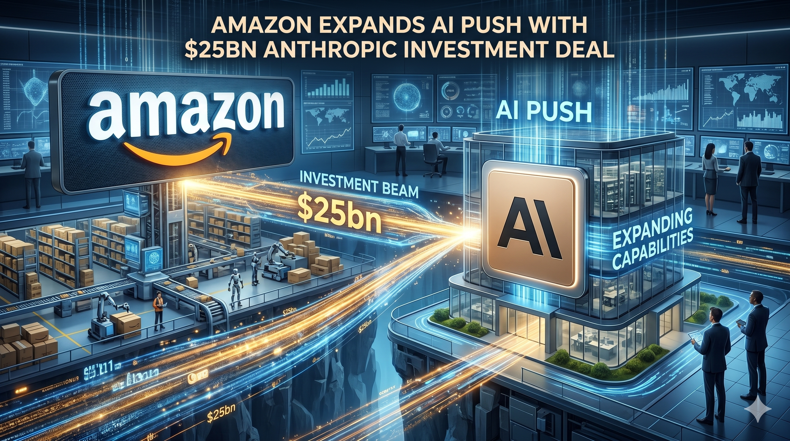 Amazon has announced plans to invest up to $25 billion in Anthropic, as part of a broader cloud agreement valued at more than $100 billion over the next decade — a major move to strengthen its position in the AI race.